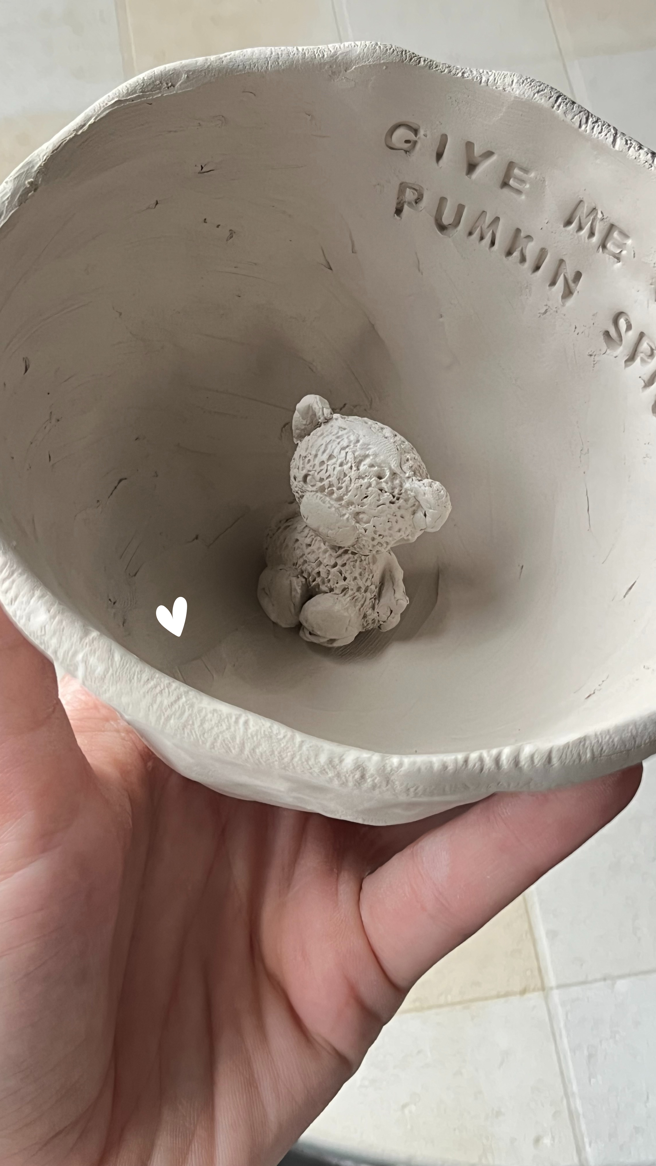 Soon it will be possible to add teddy bears to some of the custom mugs. Each teddy bear is handmade and glazed