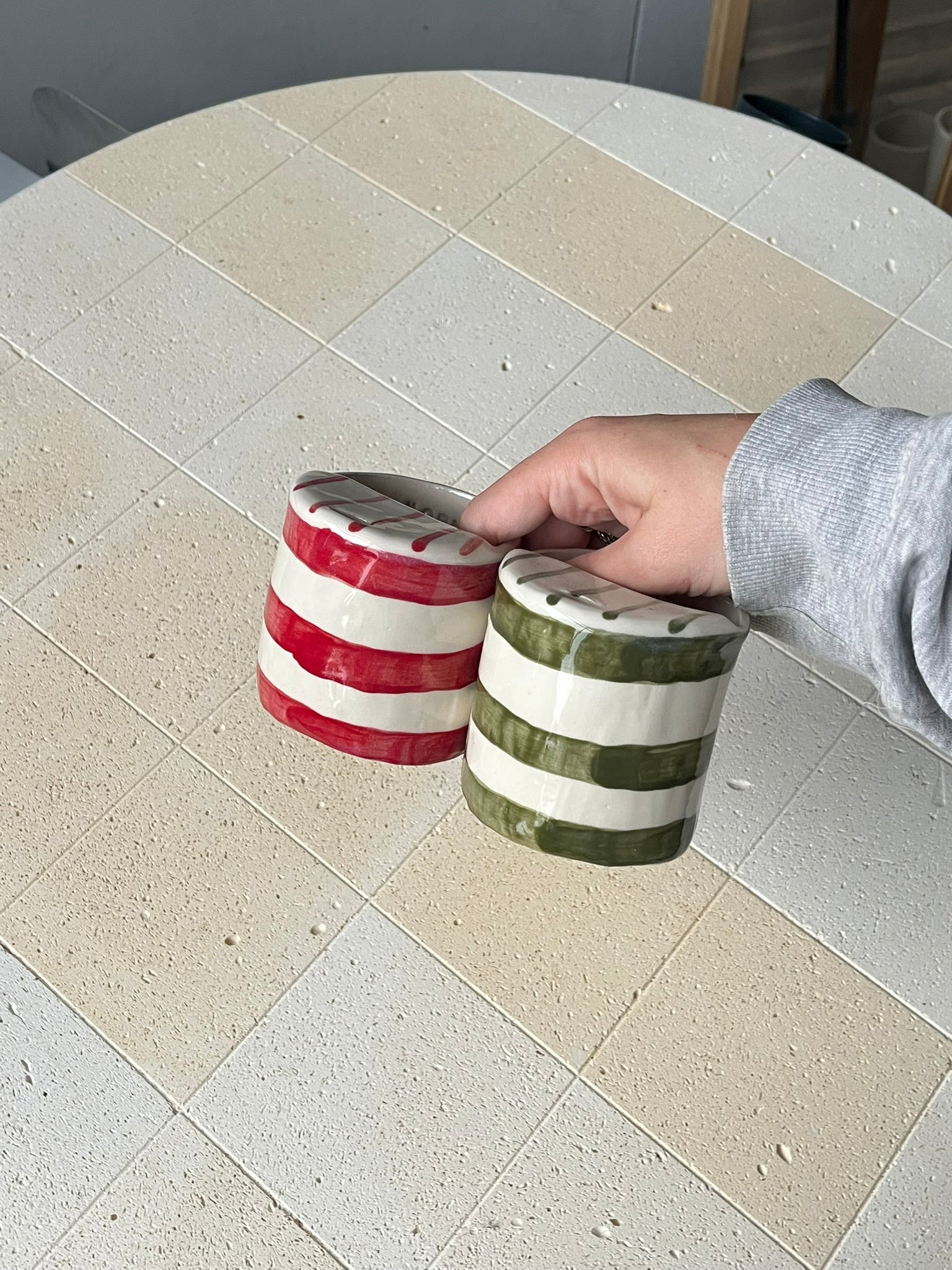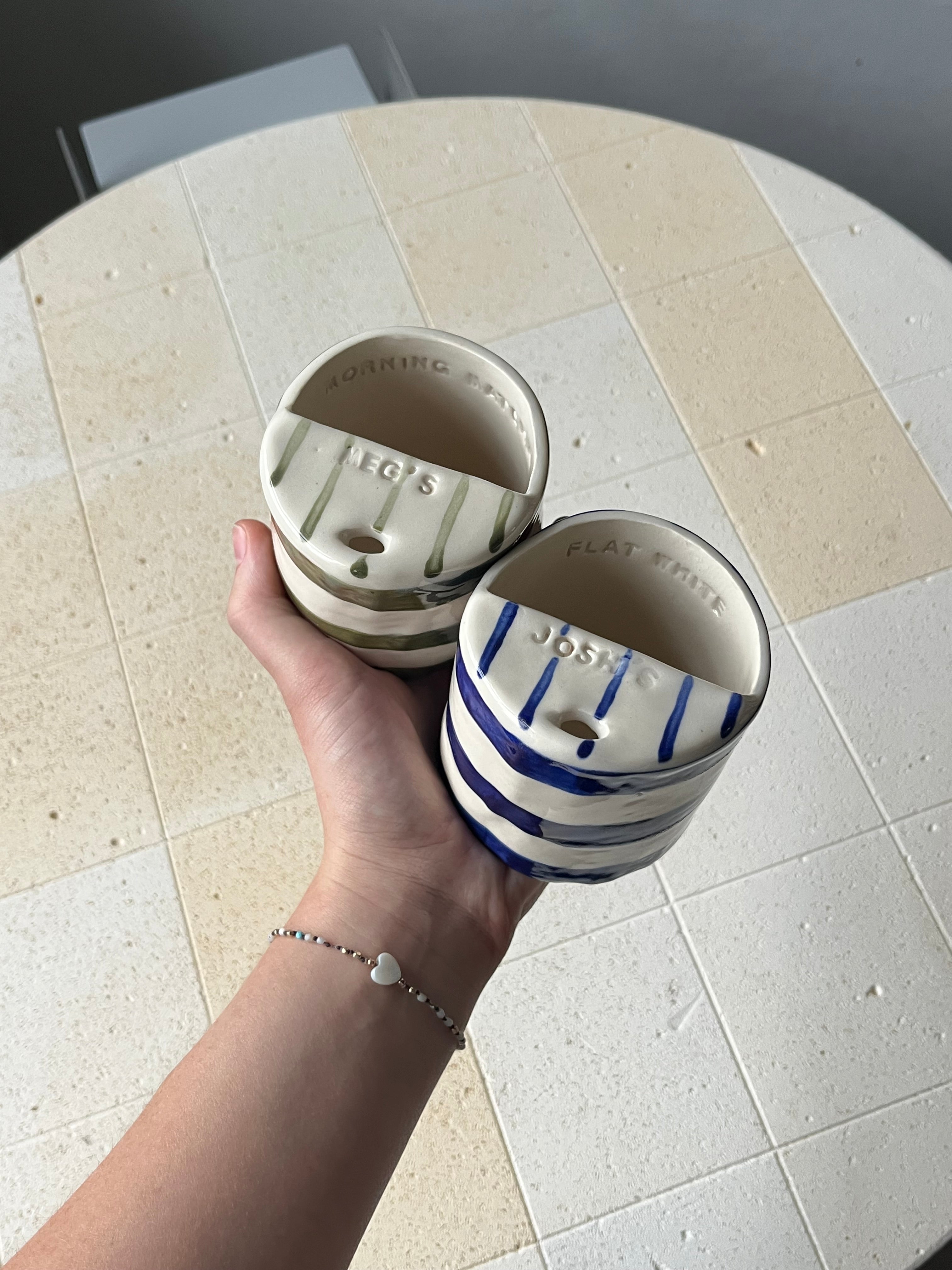 Yes! You can fully customize each mug separately, choose different shapes, colours or texts for both.