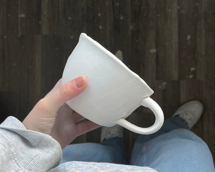 • Original shape: features a handle, a typically handmade mug model. Made using the pinch method.