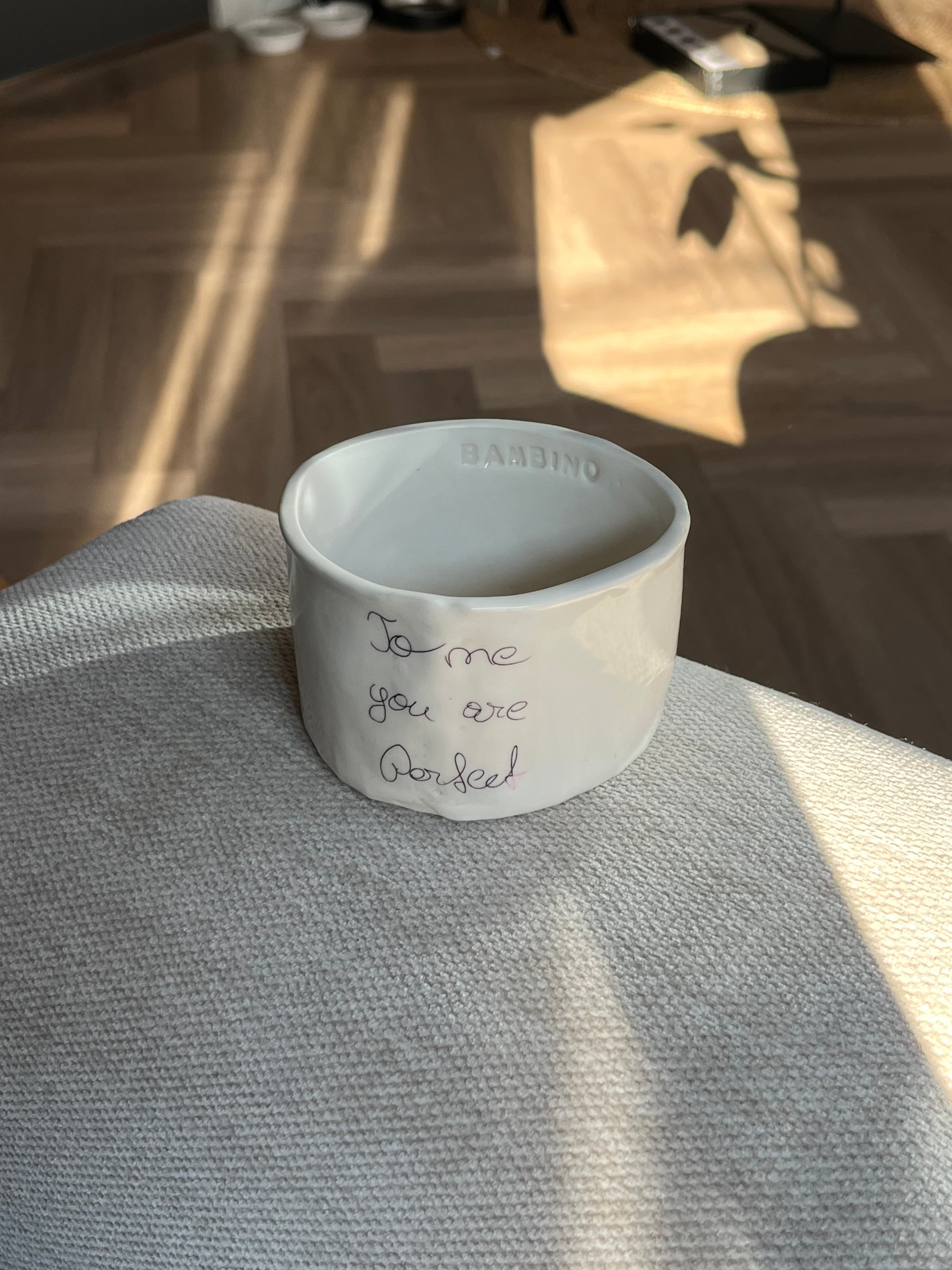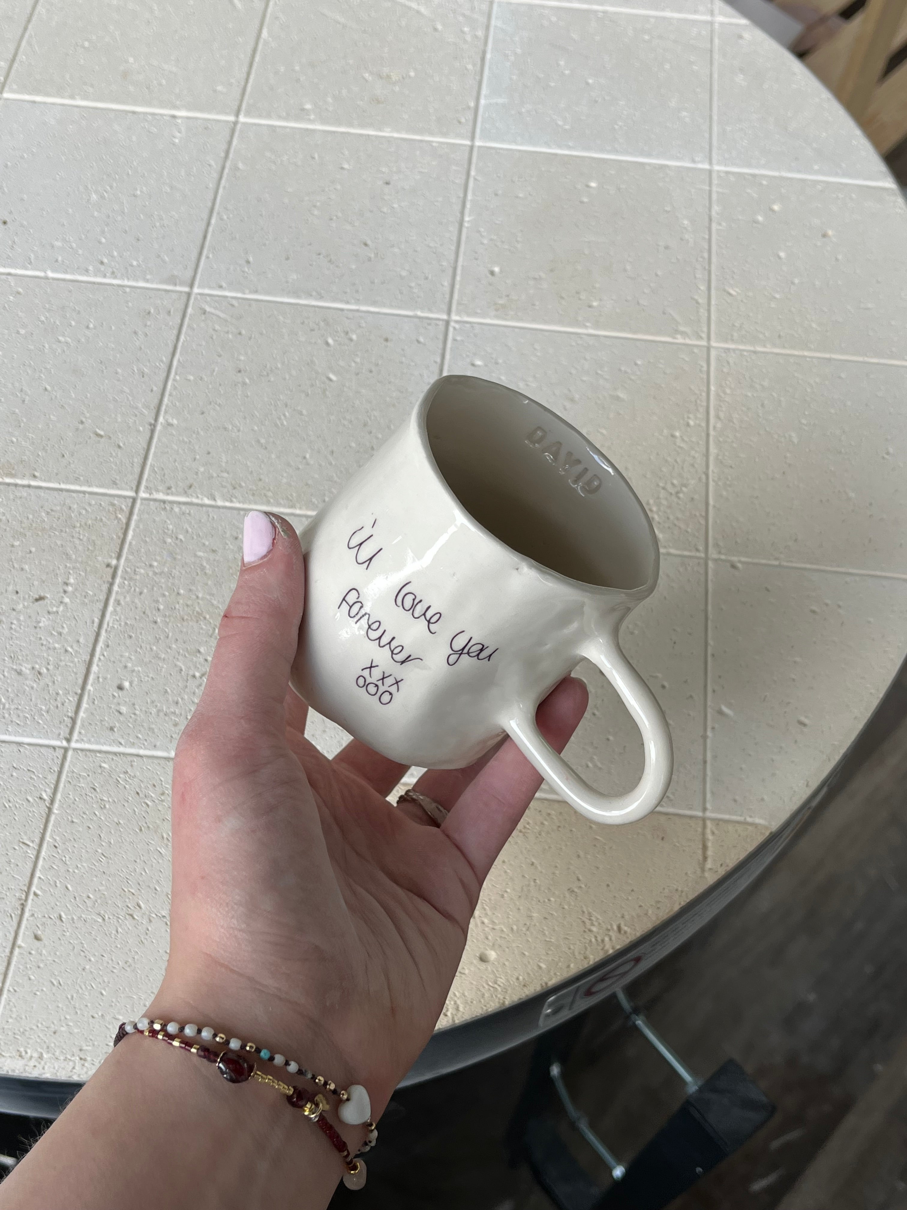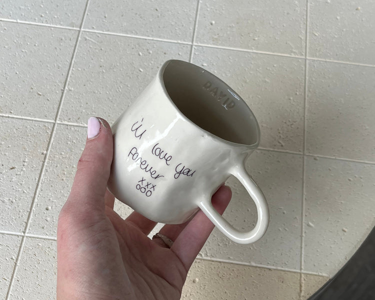 A handwritten note on your mug, preserved forever.
